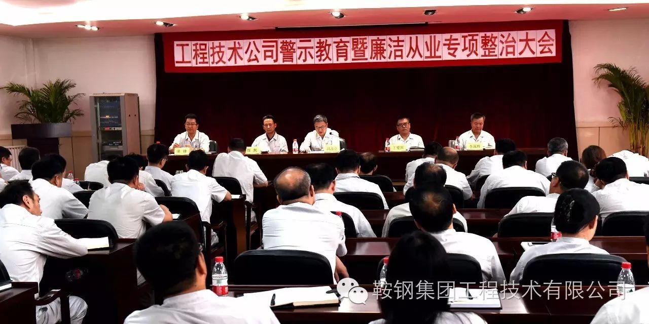 8月30日,鞍钢集团工程技术有限公司召开警示教育暨廉洁从业专项整治大会,全面贯彻集团公司警示教育暨持续深化巡视整改会议精神,认真落实党要管党,从严治党要求,不断推进反腐倡廉工作,持续深化专项整治,为完成公司全年生产经营目标提供坚强保证。