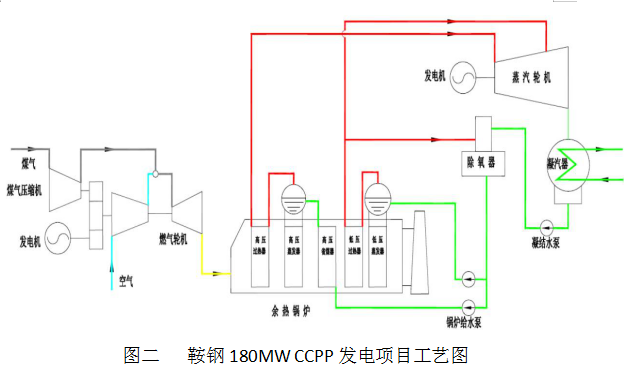鞍钢集团高度重视环境保护和循环经济发展,始终秉承“循环发展、绿色钢铁”的理念,深入挖潜、优化操作,保证煤气回收,为高效利用富裕煤气,经过充分科学论证,决定采用燃气-蒸汽联合循环发电工艺对富裕煤气进行高效利用。