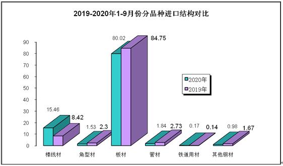 2020年1-9月份钢材、钢坯进出口走势 9月份中国进口钢坯279.3万吨仍处高位,钢材进口288.5万吨,较上月增加64.4万吨,6-9月份连续四个月我国为粗钢净进口,并且净进口量逐月增加。 图1:折成粗钢月度净出口 一、钢材、钢坯进出口情况 1、钢坯进口情况 2020年9月进口钢坯279.3万吨,进口平均价格为446.3美元/吨,较上月增加36.5美元/吨,1-9月份钢坯进口1416.7万吨,同比增长932%,进口平均价格为431美元/吨,其中普方坯和普板坯分别进口750.3万吨和523.4万吨。1-9月份钢坯出口1.48万吨。 2020年1-9月份普方坯进口主要来自印度、俄罗斯联邦、越南、伊朗、马来西亚、乌克兰、印度尼西亚、阿曼、日本、哈萨克斯坦、韩国、阿联酋和巴西,分别进口202.8万吨、127.3万吨、102.5万吨、81.6万吨、74.8万吨、39.3万吨、35万吨、26万吨、16.8万吨、12万吨、9.4万吨、8.1万吨和7.7万吨。 2020年1-9月份普板坯进口主要来自俄罗斯联邦、巴西、越南、阿联酋、印度、印度尼西亚、日本、伊朗、墨西哥、韩国、乌克兰、沙特阿拉伯、哈萨克斯坦和阿曼,分别进口141.1万吨、91.2万吨、59万吨、35.4万吨、34.7万吨、33万吨、31.2万吨、26.7万吨、23.1万吨、14.7万吨、8.7万吨、7.7万吨、6.9万吨和5.5万吨。 2、钢材进出口情况 2020年9月钢材出口383.5万吨,同比降低28.1%,出口金额同比降低22.2%,1-9月份钢材出口4038.6万吨,同比降低19.6%,出口金额同比降低20.4%;9月份进口钢材288.4万吨,同比增长158.5%,进口金额同比增长62.6%,1-9月份进口钢材1507.3万吨,同比增长72.2%,进口金额同比增长18%。 9月份钢材进口保持高位,9月份钢材净出口94万吨,9月份进口钢坯279.3万吨,进口钢锭4345吨,出口钢坯钢锭779吨,折成粗钢9月份净进口179.5万吨,较上月的净进口增加10万吨,6-9月份粗钢净进口量连续四个月不断增加。 1-9月份钢材净出口2531.3万吨,钢坯进口1416.7万吨,钢锭进口5.1万吨,钢坯、钢锭出口1.6万吨,1-9月份折合成粗钢净出口1263万吨。 从贸易额看,1-9月份钢材进口贸易额122.6亿美元,出口贸易额332亿美元,进出口贸易总额顺差209.4亿美元。9月份进口单价为688.1美元/吨,较上月降低20.2美元/吨,与去年同期相比降低412美元/吨,出口单价为907.3美元/吨, 9月份出口单价再次超过进口单价218.2美元/吨。 图3:钢材月度进出口价格走势图 按贸易方式分,1-9月份出口钢材中一般贸易出口3874万吨,占出口量的95.9%,1-9月份进口钢材中一般贸易进口1262.2万吨,占钢材进口量的83.7%,进料加工贸易进口157.8万吨,占进口量的10.5%。 分国家/地区进出口 从分国家/地区进口情况看,9月份主要进口国家和地区是韩国、日本、中国台湾、印度、马来西亚、越南、乌克兰、印度尼西亚和俄罗斯联邦,分别进口56.2万吨,53.5万吨、39.6万吨、36.6万吨、25.4万吨、14.5万吨、11万吨、10万吨和8.1万吨,从上述国家/地区进口占9月份进口量的88.4%。其中从印度进口平均价格为449.6美元/吨,马来西亚进口平均价格为430.8美元/吨,乌克兰进口平均价格为398.7美元/吨,俄罗斯进口平均价格为408.2美元/吨,从这些国家进口的钢材大幅拉低了进口平均价格。 1-9月份钢材主要进口自韩国、日本、印度、中国台湾、马来西亚、印度尼西亚、德国、俄罗斯联邦、哈萨克斯坦、越南、乌克兰、瑞典和荷兰,分别进口390.8万吨、359.1万吨、170万吨、150.6万吨、136.9万吨、60.8万吨、39.9万吨、28.1万吨、27.6万吨、24.7万吨、23.9万吨、12.8万吨和11.9万吨,进口中国产钢材10.9万吨。2019年1-9月份从日本、韩国、中国台湾进口占进口量的83.8%,今年1-9月份从日本、韩国和中国台湾进口仅占进口量的59.7%,而从印度、马来西亚和印尼的进口分别占到了11.28%、9.1%和4.2%。 图4:钢材分国别进口对比 从分地区钢材出口情况看,1-9月份出口亚洲2777万吨,占出口量的68.8%,出口非洲471万吨,占出口量的11.7%,出口欧盟175万吨,占出口量4.3%,出口南美秘鲁、智利和巴西三个国家的数量为203万吨,占出口量的5%,出口美国、墨西哥和加拿大三个北美国家的数量在106万吨,占出口量的2.6%。 从具体的分国家/地区出口情况看,1-9月份出口量比较大的国家是韩国、越南、泰国、菲律宾、印度尼西亚缅甸、沙特阿拉伯和阿拉伯联合酋长国,分别出口了437.8万吨、330.6万吨、298.8万吨、224.3万吨、155.5万吨、133.1万吨、126.5万吨和108.9万吨。 1-9月份出口量在70万吨以上的国家和地区有巴基斯坦、印度、马来西亚、中国香港、秘鲁和智利,出口尼日利亚、日本、中国台湾、新加坡、巴西、孟加拉国、美国、美国、俄罗斯联邦和土耳其的数量在50万吨以上,出口意大利、加纳、埃及、澳大利亚、哥伦比亚、肯尼亚、乌兹别克斯坦、南非和科威特的数量在30万吨以上,出口蒙古、墨西哥、伊朗、西班牙、加拿大、加拿大、伊拉克、厄瓜多尔、坦桑尼亚、乌克兰、比利时、阿曼、吉布提、以色列和危地马拉的数量在20万吨以上,出口斯里兰卡、阿尔及利亚、洪都拉斯、卡塔尔、苏丹、老挝、科特迪瓦共和国、哈萨克斯坦、荷兰、哥斯达黎加、安哥拉、柬埔寨、也门共和国、德国、多米尼加共和国、莫桑比克、摩洛哥和几内亚的数量在10万吨以上。 钢材分品种进出口 从钢材分大类品种的出口看,1-9月份板材出口2446万吨,占钢材出口量的60.6%,管材和棒线材出口分别出口562.4万吨和534.7万吨,分别占钢材出口量的13.9%和13.2%,角型钢出口197.3万吨,占钢材出口量的4.9%。 1-9月份