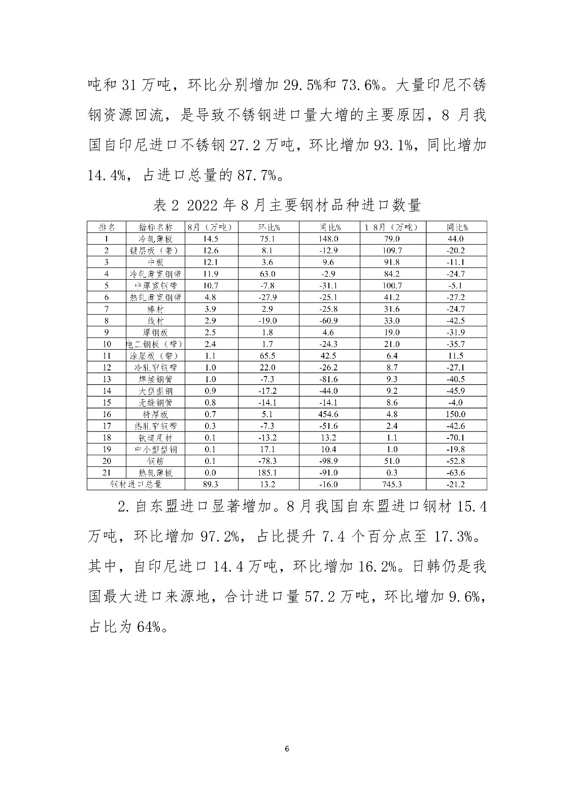 2022年8月钢铁产品进出口月报